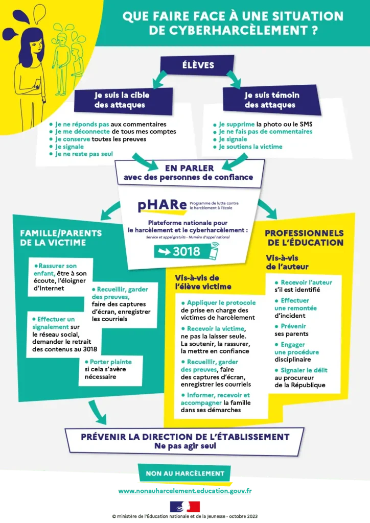 Vous pouvez également contacter le 3020, numéro national pour les victimes de harcèlement ou le 3018 en cas de cyberharcèlement.