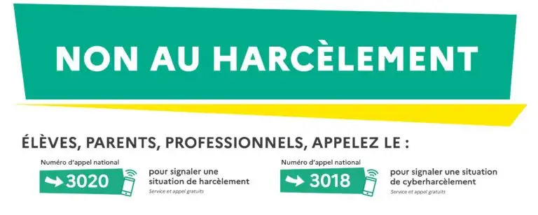 Ces numéros vous permet de signaler le problème de harcèlement scolaire dont vous êtes victime. Vous y obtiendrez des conseils et du soutien pour faire face à la situation.
