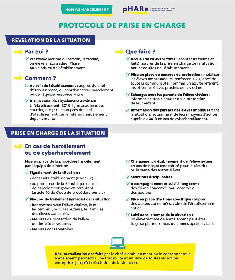 Vous pouvez également contacter le 3020, numéro national pour les victimes de harcèlement ou le 3018 en cas de cyberharcèlement.